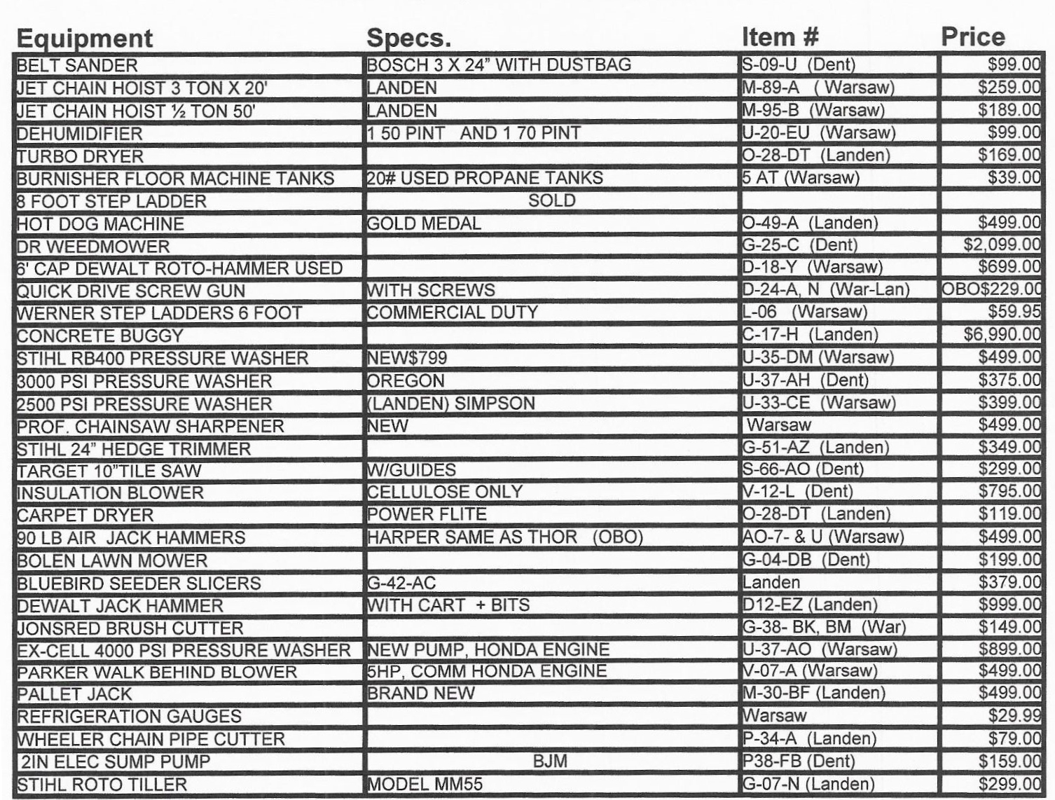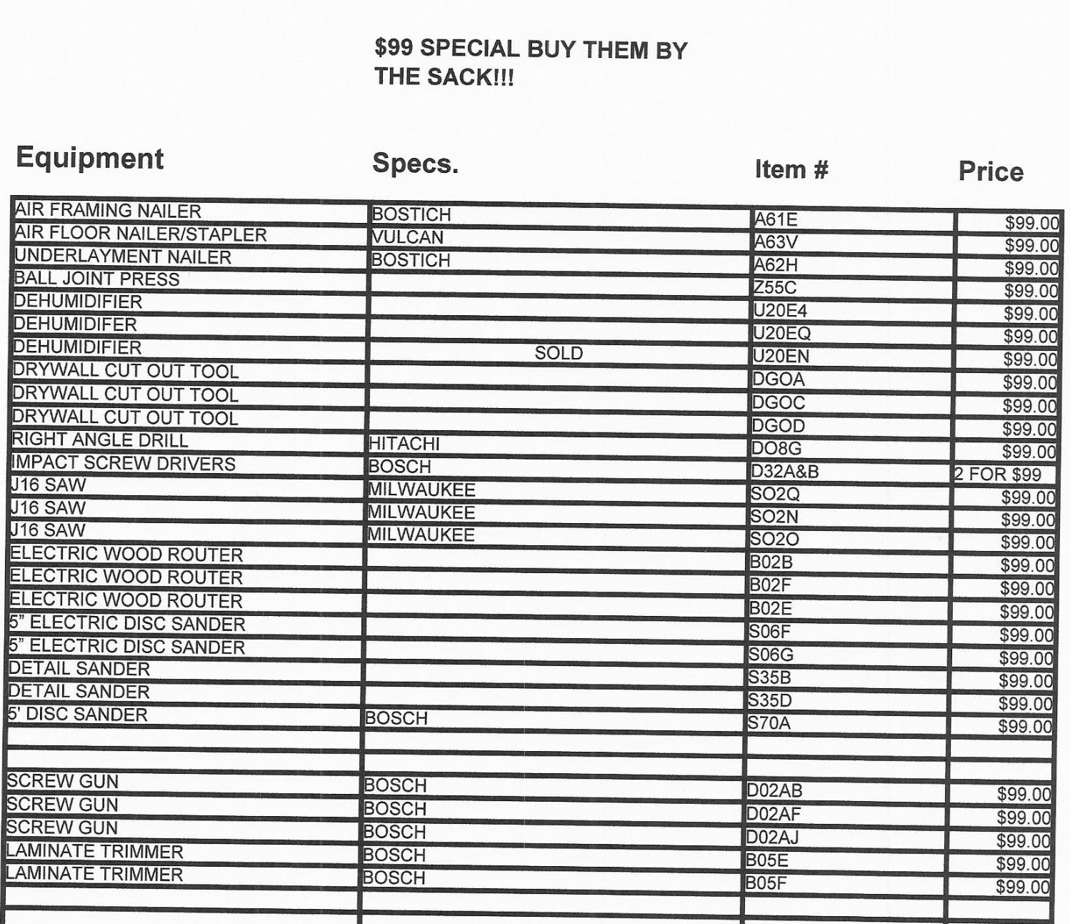 SERVICED-USED EQUIPMENTHUGE INVENTORY REDUCTION SALE
